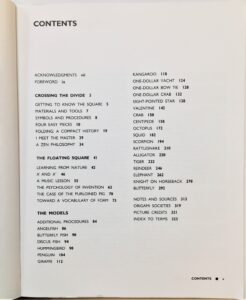 “Origami from Angelfish to Zen”, “This splendidly written, richly illustrated book is unlike any ever written about origami. It is much more than a clear introduction to the nomenclature and basic techniques of paperfolding.”