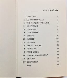 “Portraits of fourteen master aphorists”, “The book is a delight to read, both for the profiles of the aphorists and for their aphorisms.”