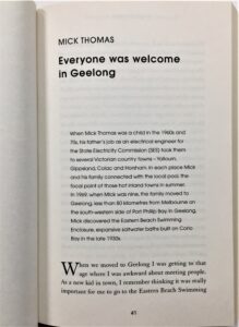 “Australian stories of Summer, sun and swimming”, “Smell the chlorine, taste the hot chips and feel the burning concrete underfoot as you read these stories of Australian childhoods at the pool.”