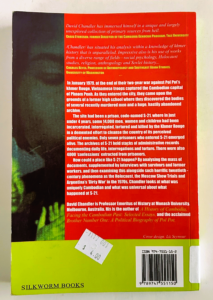 This 238 page 13.5 x 20 cm paperback book about the infamous Pol Pot prison (aka torture chambers) in Cambodia’s darkest days, was published by Silkworm books in2001. Good condition with a 14 page somewhat grainy photo section.